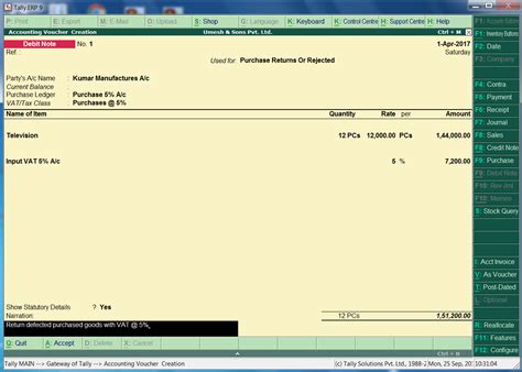 debit note entry in tally example