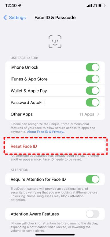 face id reset not working