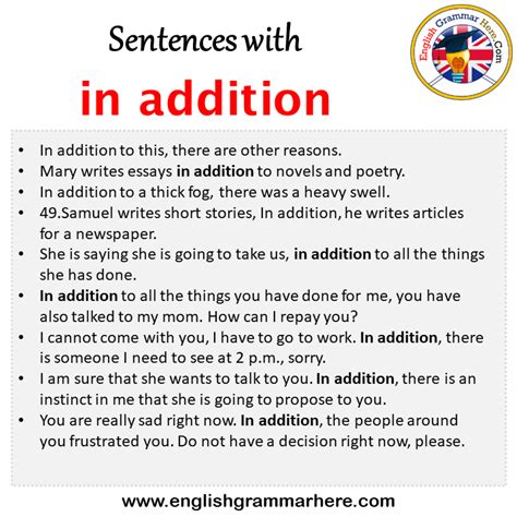 sentence with in addition example