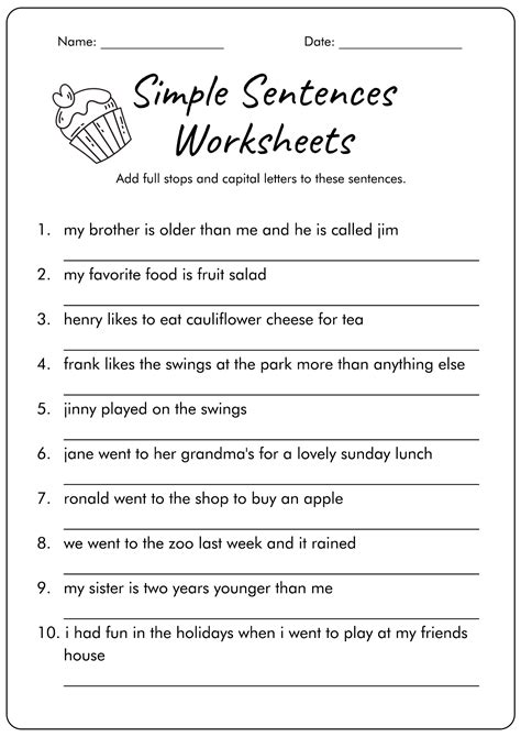 simple sentences for year 6